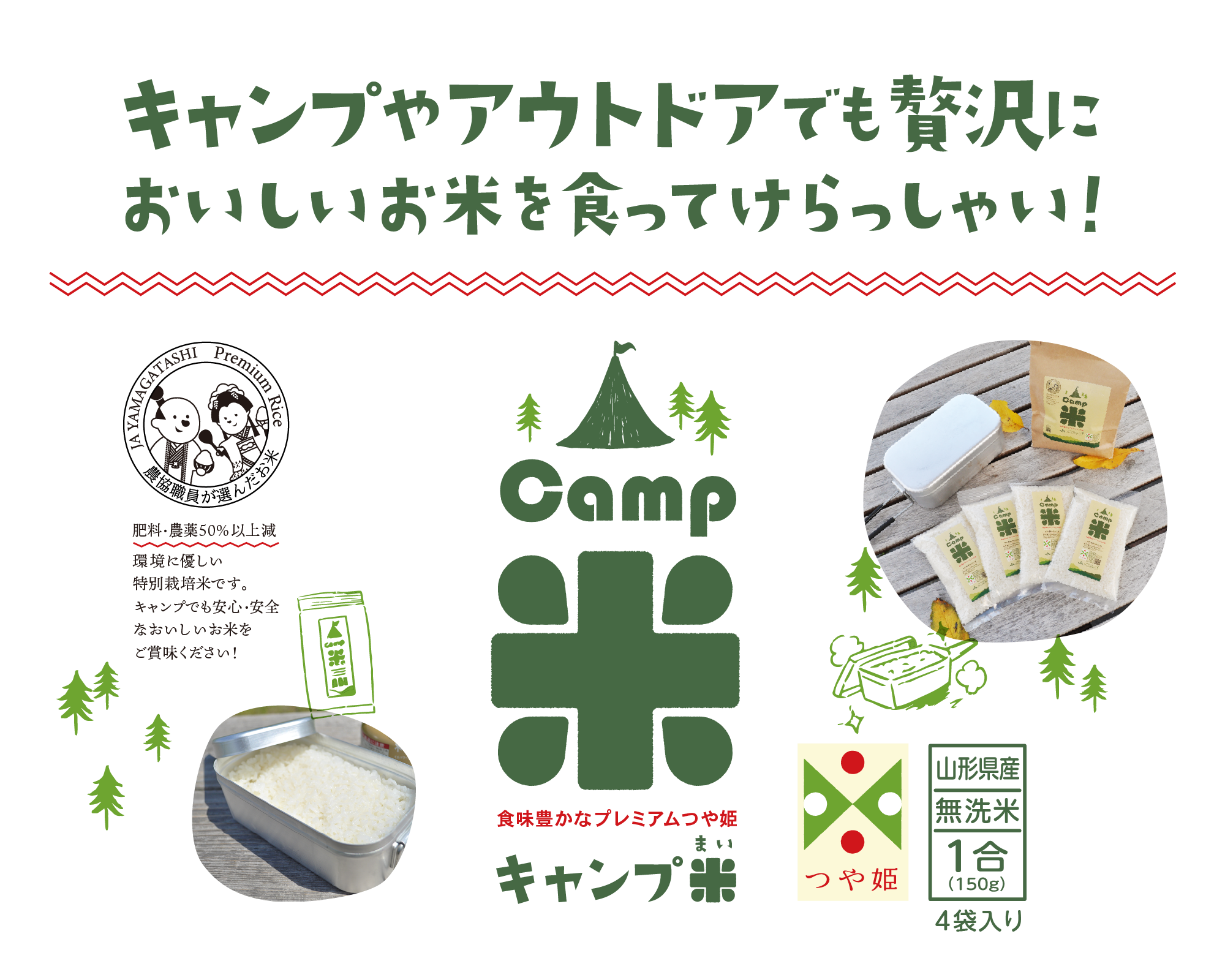 組合員の皆様が丹精をこめて栽培した「プレミアムつや姫」で是非キャンプ飯を贅沢に楽しんでください!