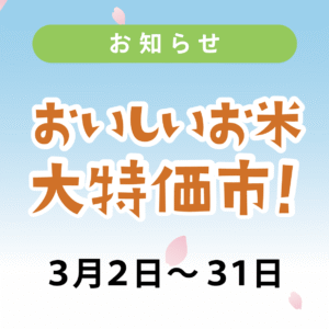 【終了しました】おいしいお米 大特価市を開催します